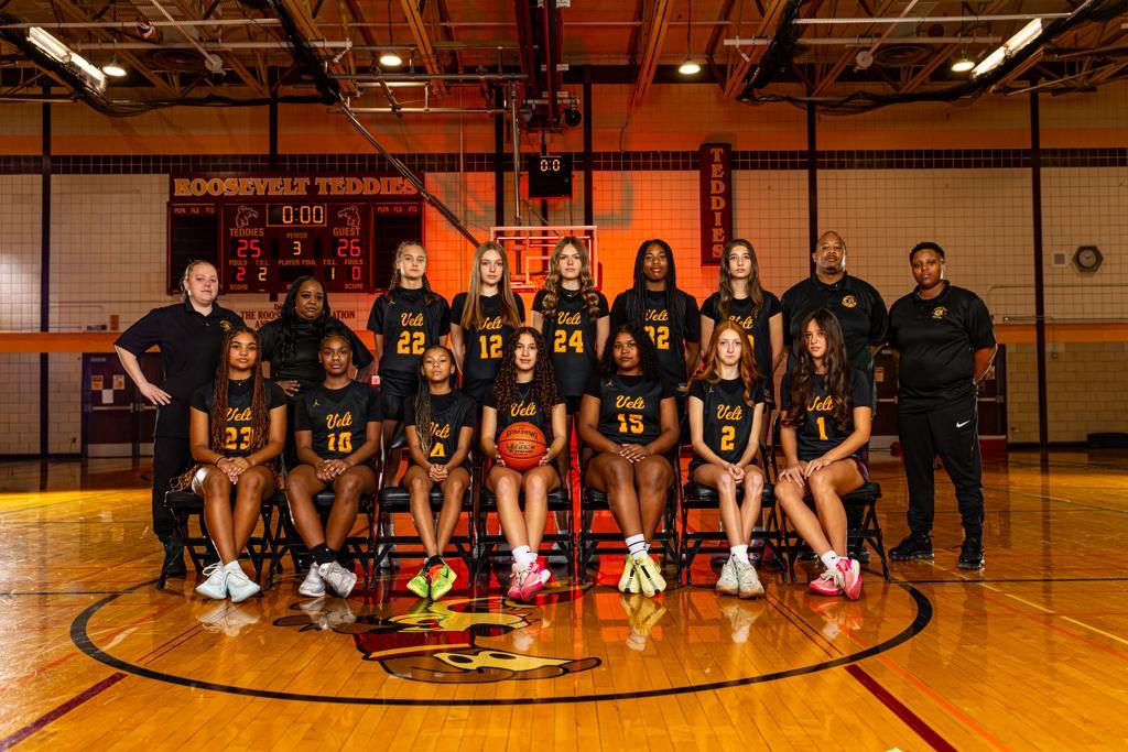 Girls Basketball: Minneapolis Roosevelt High School Girls Basketball program. Get info on Teddy Girls Basketball including program overview, team info, news, event calendar, game schedule, team awards, links to register your athlete for Roosevelt sports, links to buy Teddy Basketball Fan Gear, links to stream games live on YouTube, Team Rosters, Conference Standings, practice info, tryout dates, times and locations, photos, videos, Teddy Basketball program events organized by the Minneapolis Roosevelt Basketball Booster club. Find dates, times and participation details for fundraisers like Dine Out events, car washes as well as Game Events like Senior Night, Teacher Appreciation Night and End-of-Season Celebrations. Roosevelt Teddies, Minneapolis Theodore Roosevelt High School, Teddy Nation, We Are Roosevelt, TheVeltMpls, Once A Teddy Always A Teddy. Minneapolis Roosevelt Basketball.